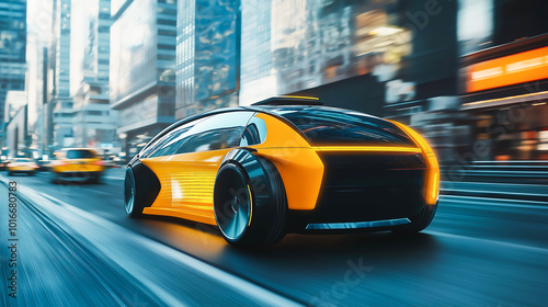 Modern taxi on the road, Electric taxi traffic in the city urban road, Future transportation concept