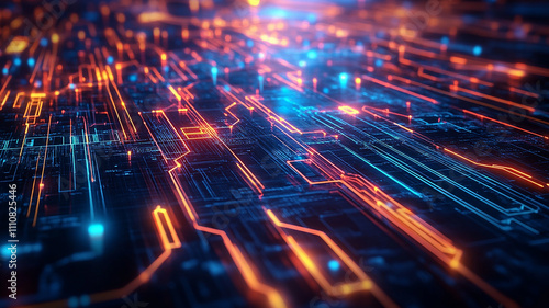Modern tech background featuring digital circuits and modern glowing neon light effect, futuristic vortex and stained neon blue color cube technology background, Futuristic abstract technology.