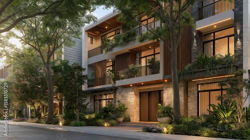 row house, architecture, residence, urban living, luxury home, residential, property, home, building, modern, design, exterior, facades, house, structure, apartment, real estate, living, urban, neighbourhood, suburb, elegant, stylish, upscale, inviting, natural light, green, tree, landscape, garden, entrance, window, balcony, detail, render, dwelling, housing, estate, development, construction, front