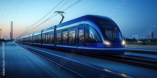 train, urban, transit, twilight, city, skyline, transportation, technology, blue, dusk, modern, design, track, efficiency, environment, railway, travel, commuting, infrastructure, motion, light, city landscape, locomotive, public, transport, evening, life events, electric, rail, system, speed, modernity, passenger, development, life, scenic, network, mobility
