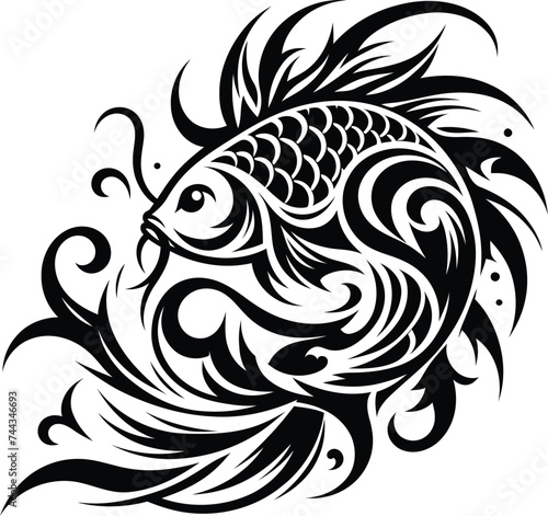 koi, fish, swim, water, sea, tribal, tattoo, animal, vector, design, art, illustration, simple, aesthetic, hand-drawn, abstract, graphic, silhouette, ornate, element, decor, ornament, drawing, nature, shape, black, vintage, swirl, line art, monotone, minimal, bw, ink, artist, poster, tote bag, wild animal, pet, animal