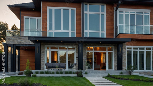 Modern Two-Story Residence with Cedar Siding and Large Windows