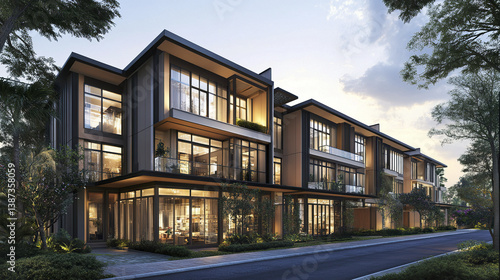urban, modern, window, greenery, architecture, contemporary, building, residential, exterior, facades, street, tree, evening, sky, design, glasses, commercial, real estate, luxury, neighbourhood, landscaping, pathway, stylish, elegant, city, development, structure, outdoors, environment