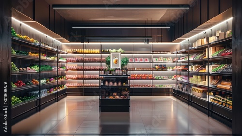 modern, urban, supermarket, retail, grocery, store, convenience, shopping, contemporary, interior, clean, roomy, aisle, shelf, product, empty, minimalistic, organised, consumerism, commercial, architecture, fresh
