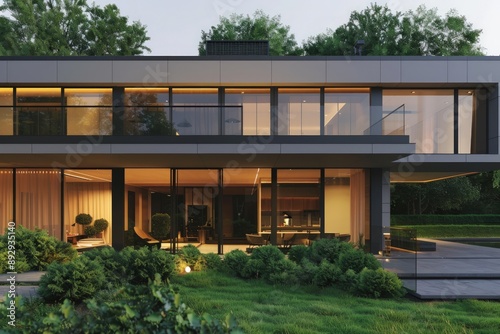modern, villa, exterior, sleek, line, large, glasses, window, lush, green, garden, building, bathe, warm, evening, light, reflecting, off, creating, serene, elegant, ambience, stunning, crisp, high-coloured, detailed, colourful, sharp, realistic, visually, appealing, design, property, beautiful, front, residential, driveway, expensive, lawn, porch, suburb, roof, entrance, house, home, architecture