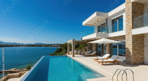 modern, villa, stunning, pool, serene, lake, luxury, architecture, design, contemporary, retreat, relaxation, leisure, nature, vacation, water, landscape, summer, sunshine, elegant, property, home, lifestyle, comfort, view, calmness, resort, escape, beautiful, scenery, peaceful, environment, seating, chair, patio, vacationer, elegance, blue, sky, horizon