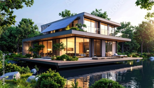 Modern Waterfront Villa at Sunset Luxury Living on the Lake.