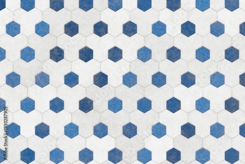 Modern white and blue hexagonal honeycomb tile pattern for creative interior wall and floor design