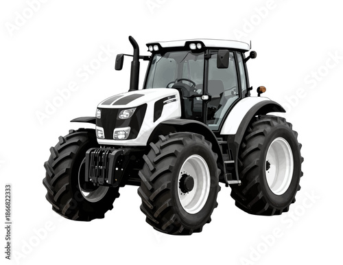 Modern White Tractor with Large Tires