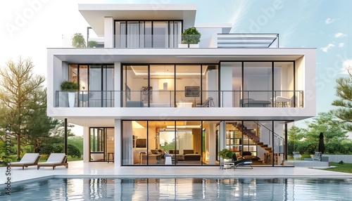 villa, house, modern, architecture, home, luxury, pool, swimming pool, real estate, property, exterior, design, building, window, sky, blue, green, tree, garden, sun, summer, day, cloud, contemporary, lifestyle, residential, nobody, travel, vacation, holiday, wealth, success, dream
