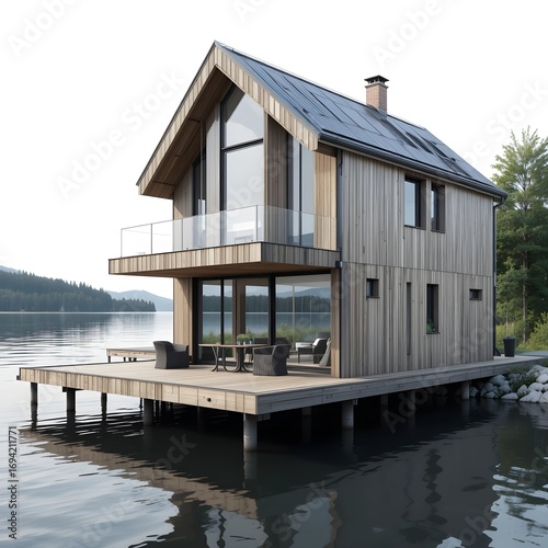house, modern, wooden, water, window, architecture, design, exterior, building, structure, balcony, lake, nature, landscape, scenery, view, daylight, light, shadow, perspective, style, contemporary, home, residence, property, real, estate
