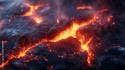 molten lava flowing through hardened rock, symbolizing the raw power of nature, transformation, and the Earth's constant renewal and evolution
