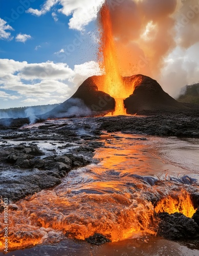 lava, volcano, eruption, fire, flow, magma, hot, stream, molten, rock, nat, geyser, landscape, water, nature, steam, sky, yellowstone, mountain, geothermal, iceland, park, volcanic, lake, crater, island, national, smoke, sunset, spring