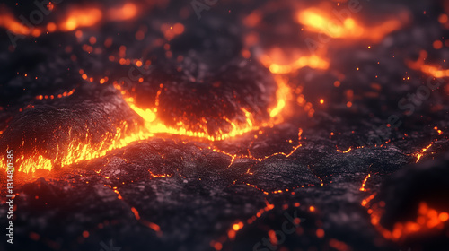Molten Lava Texture Fiery Abstract Background with Cracks and Glowing Embers.