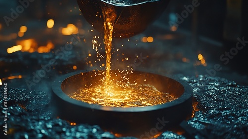 molten, metal, pouring, ladle, plaster bandage, iron, process, liquid, foundry, industry, manufacturing, fire, heat, metalworking, craftsmanship, workshop, container, furnace, production, technology, glow, steel, casting, material, shape, transformation, factory, tool, equipment, intense, innovation, raw, element, flow, industrial, workflow, skilled, art, creation, technique, precision, labor, work, energy