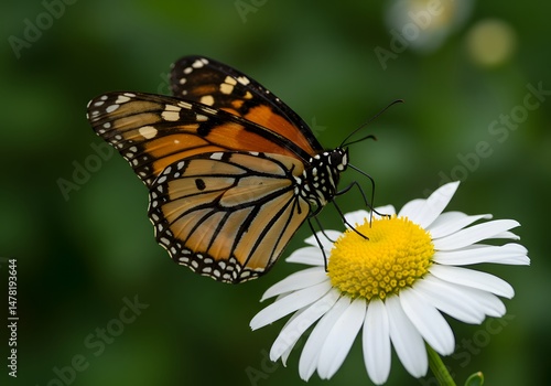 Monarch Butterfly on Daisy Flower - Nature, Wildlife, Pollination, Insect, Summer Garden Close-up.
