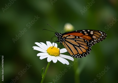 Monarch Butterfly Resting on a Daisy Flower, Nature's Beauty, Close-up, Pollination, Summer Garden.