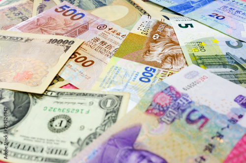 Money euro, dollar, USA, Hong Kong, China, currency exchange concept