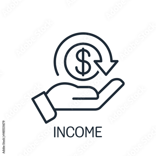 Money in hand. Additional financial opportunity, earnings. Income. Vector linear icon illustration isolated on white background.