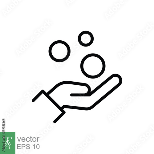Money on hand, obtain line icon. Simple outline style hand and coins for web template and app. Vector illustration isolated on white background. EPS 10.