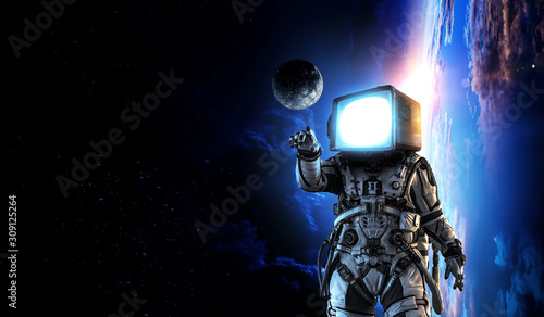 Monitor headed astronaut . Mixed media