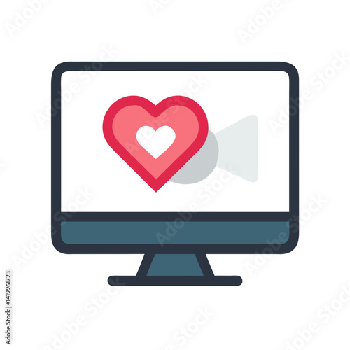 Monitor with Heart Video Icon Representing Virtual Romance and Online Relationship