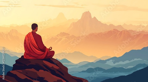 meditation, monastic, mountain, sunrise, nature, peace, serenity, spirituality, calm, sharpened, yoga, landscape, zen, asia, himalaya, hindu, buddhist, relaxation, contemplation, calmness, inspiration, spiritual, view, adventure, scenic, peaceful, calmness, mountain summit, elevation, horizon, misty, cloud, colours, orange, sunset, rocky, sky, rock, quiet, inspirational, travel