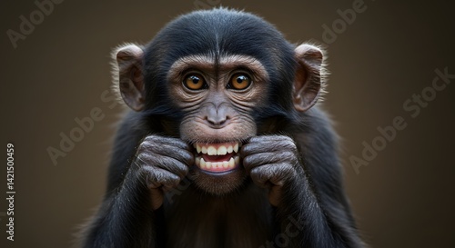 Monkey Grinning and Showing Teeth Close Up Portrait