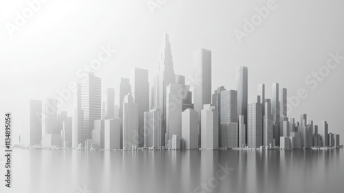Monochromatic Cityscape: A Minimalist Architectural Rendering of a Modern Metropolis