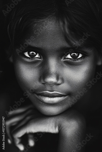 portrait, black, white, girl, young, children, model, photo, indigenous, serene, indian, asian, southeast, thoughtful, calm, expression, beauty, natural, face, close, hand, cheek, dark, background, photo, monochrome, youth, emotion, peaceful, minimalistic, soft, detail, elegance, classic, fine, gentle, innocence, light, simplicity, studio, female, sharpened, timeless, intimate, facial, contemplative, feature
