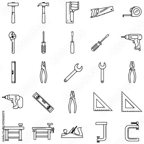 simple icons, illustration, graphic design, web design, printable, downloadable, vector, icon, set, tool, icon, symbol, tool, vignetting, screw, hammer, design, music, equipment, collection, drawing, musical, repair, wrench, bolt, doodle, signs, plier, silhouette