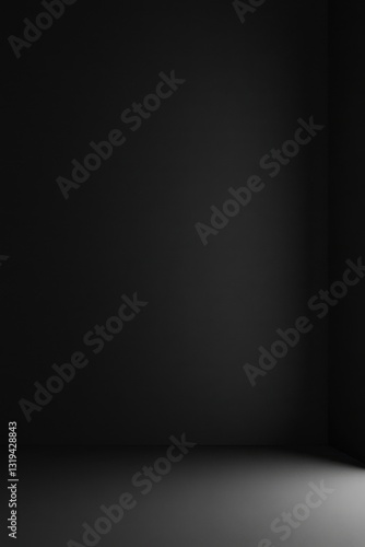 Monochrome corner: Dark, minimalist space with soft light highlighting floor texture. Dramatic shadows