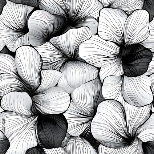 Monochrome floral pattern, intricate line art, seamless design, textile print