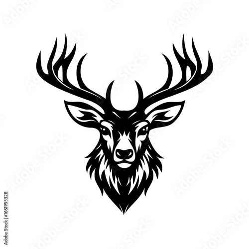 Monochrome graphic representation of a majestic deer head with prominent antlers