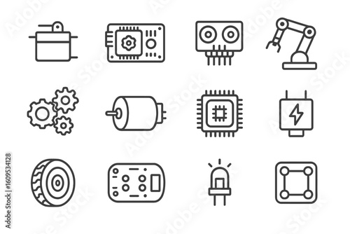 monochrome, icon, robotic, automation, technology, gear, motor, circuit, robot, machinery, cog, device, schematic, futuristic, mechanical, engineering, industrial, design, innovation, digital, symbol, processor, system, energy, wheel, led, connection, interface, tech, precision, electronic, component, illustration, outline, tool, hardware