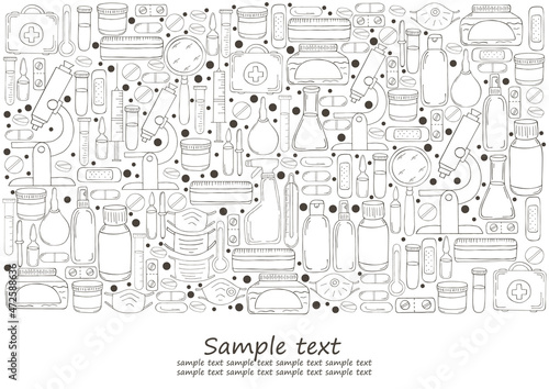 frame, rectangle, flier, text, case, stethoscope, thermometer, mask, injection, enema, book, activity, black, cartoon, children, coloration, design, education, illustration, painting, preschool, vector, white, icon, isolated, linear, symbol, pictogram, medicals, medicine, health, instrument, doctor, pill, set, blood, capsule, chemistry, drug, object, collection, medic, urgency, clinic, assistance, tool, first, help
