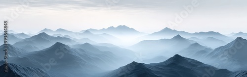 Monochrome mountain silhouette horizon with gradient shades of gray