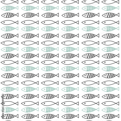 Monochrome seamless pattern with simple fishes. Scandinavian abstract background.