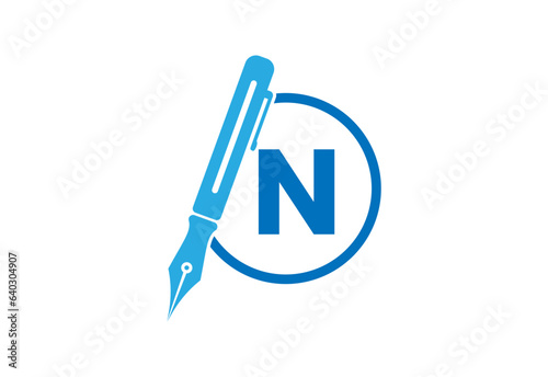 monogram logo design Round shape with Pen icon with letters
