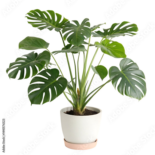 Monstera delicios plant in pot isolated on transparent background