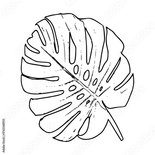 monstera, leaf, leaf, tropical, houseplant, vector, illustration, nature, design, plant, black, art, drawing, symbol, element, pattern, summer, decoration, botany, flora