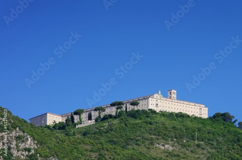 casino, church, monastery, italy, latium, abbey, house, mountain, hill, blue, heaven, europa, pine, tree