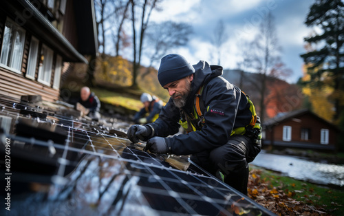 monterzy zakładają panele fotowoltaiczne w gospodarstwie domowym