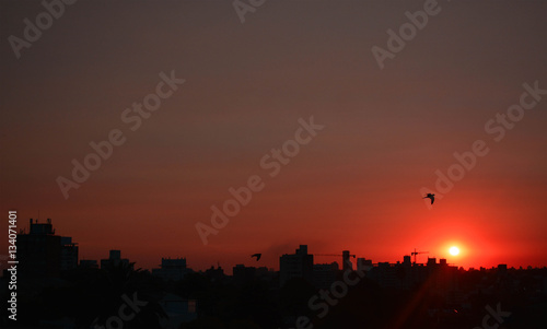sunset, city, sky, sun, uruguay, bird, montevideo