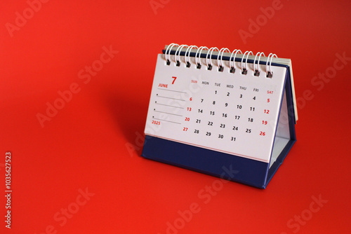 Monthly calendar template for the new year 2025 desk calendar,on red background