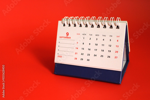 Monthly calendar template for the new year 2025 desk calendar,on red background