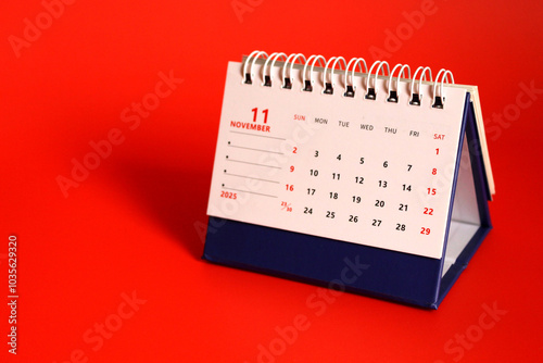 Monthly calendar template for the new year 2025 desk calendar,on red background