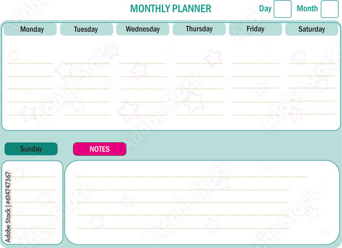 Monthly Planner, Organizer Planner, paper, note, template