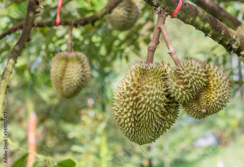 Monthong durian waiting for harvest on the tree in the farmer's garden is thailand's most famous fruit.