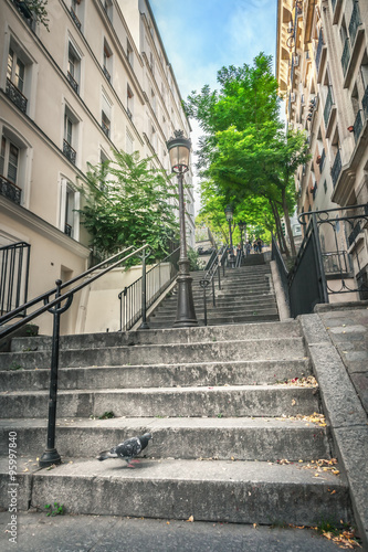 montmartre, paris, france, city, street, staircase, stair, step, french, alley, apartment, architecture, building, built, capital, city landscape, destination, district, europa, exterior, facades, foliage, high, hill, history, house, lamp, landmark, landscape, lantern, lush, nature, old, pigeon, place, residential, scene, stone, tour tourism, holiday maker, town, traditional, travel, tree, typical, up, urban, vacation, view, window